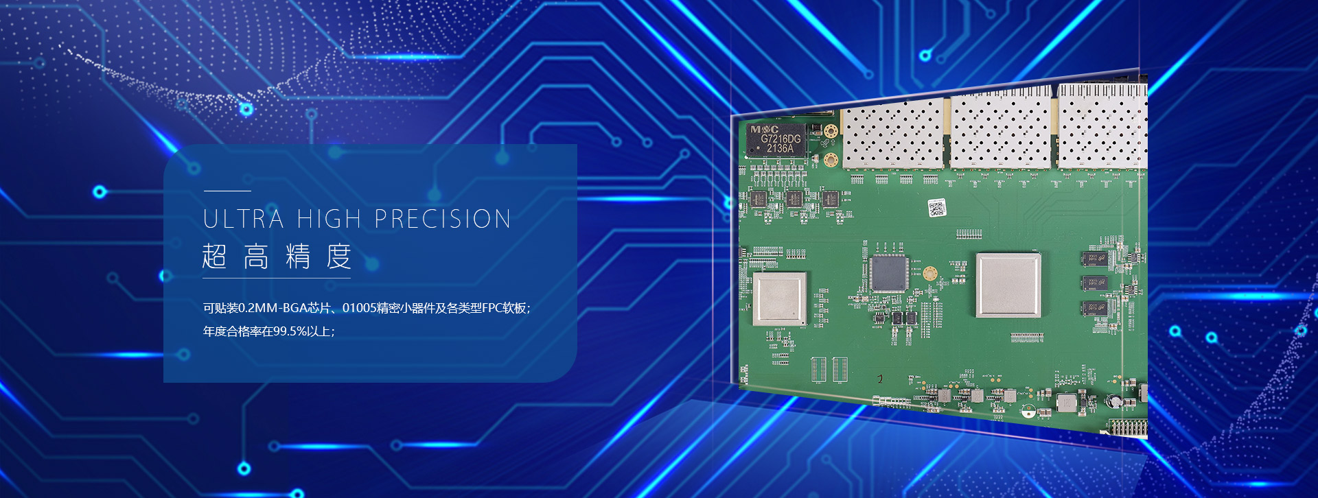 可貼裝0.2MM-BGA芯片、01005精密小器件及各類型FPC軟板,公司具備完備的質(zhì)量體系和行業(yè)所需全面的檢驗(yàn)設(shè)備,年度合格率統(tǒng)計均在99.5%以上。
